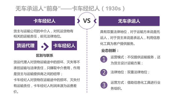 而从卡车经纪人到无车承运人变革的过程中,最重要的桥梁是“无船承运人”模式。