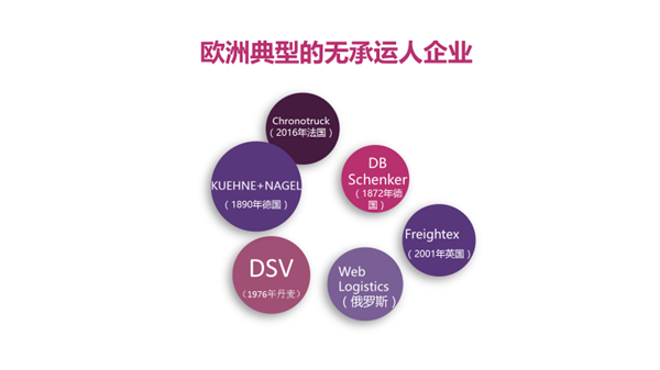 这是几家典型的欧洲无车承运人企业。虽然这几家企业不能完全代表所有的欧洲的无车承运企业,但通过对这几家企业的分析至少可以初步窥探出欧洲无车承运人的发展轨迹。