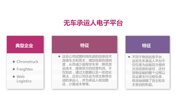 3.随后,受到信息技术发展的影响,无车承运人电子平台又成为了时代发展的主流之一。