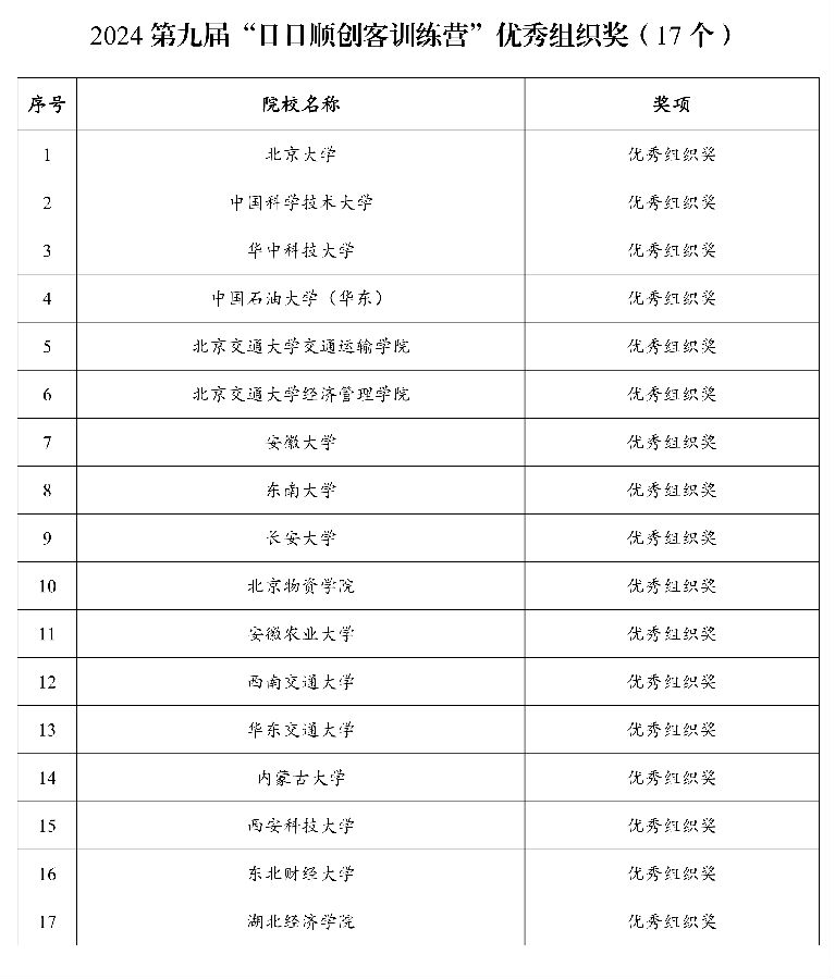 由老伟德官方体育、日日顺供应链科技股份有限公司共同主办的2024第九届“日日顺创客训练营”,于2024年4月15日正式启动,25所院校组织的近500余名师生参与了此次活动。通过“种子集”“天使学”“A轮研”“B轮创”四个环节,历时近半年时间,经由行业专家及企业高管组成的评审组,根据《训练营评选规则》评选认定,其中38个创业创新解决方案在研究方向、设计方法、实用程度、创新创意、团队实力及预期效益上表现突出,为此主办方分别对大学生创业项目团队授予金、银、铜奖;同时为表彰参营院校所做的组织工作,决定授予北京大学、中国科学技术大学等17所院校“日日顺创客训练营优秀组织奖”(获奖名单附后)。